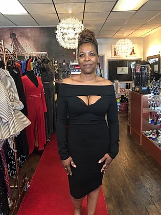Cold shouldered long sleeve midi dress. Keyhole opening in front.