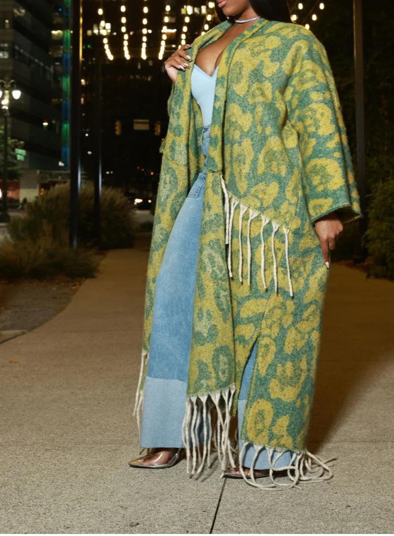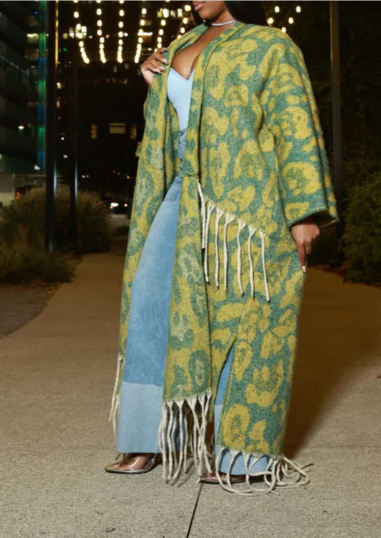 Embrace effortless style with the Luxe Fringe Cardigan. Designed in a soft, cozy knit, this one-size piece offers a relaxed, flowy fit that flatters all shapes. Featuring chic fringe accents along the hem and sleeves, it’s the perfect blend of bohemian charm and sophisticated elegance. Ideal for layering over any outfit, from casual denim to a dressy ensemble, this cardigan is a versatile staple that adds a touch of luxe to your everyday look. Wrap yourself in boho beauty all season long!