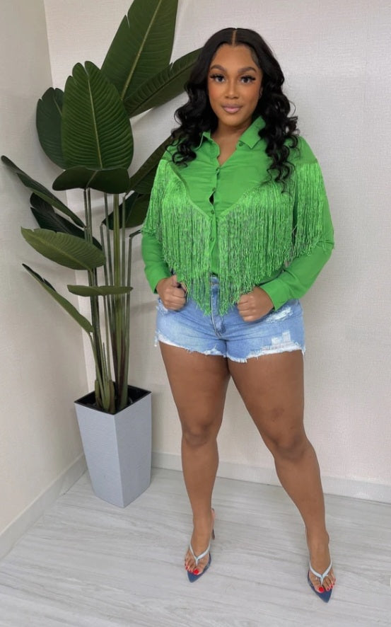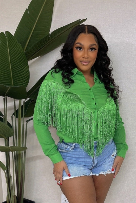 Button down fringe chiffon shirt with collar.