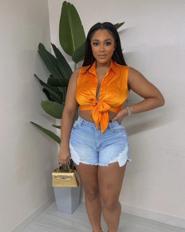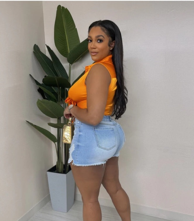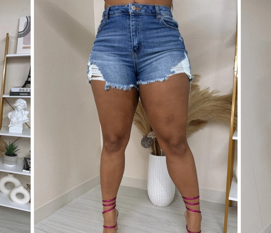 High waisted distressed denim shorts