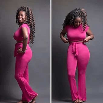 Very soft, beautiful and comfortable, this 2 pc can be dressed up or down. Ties at the waist.