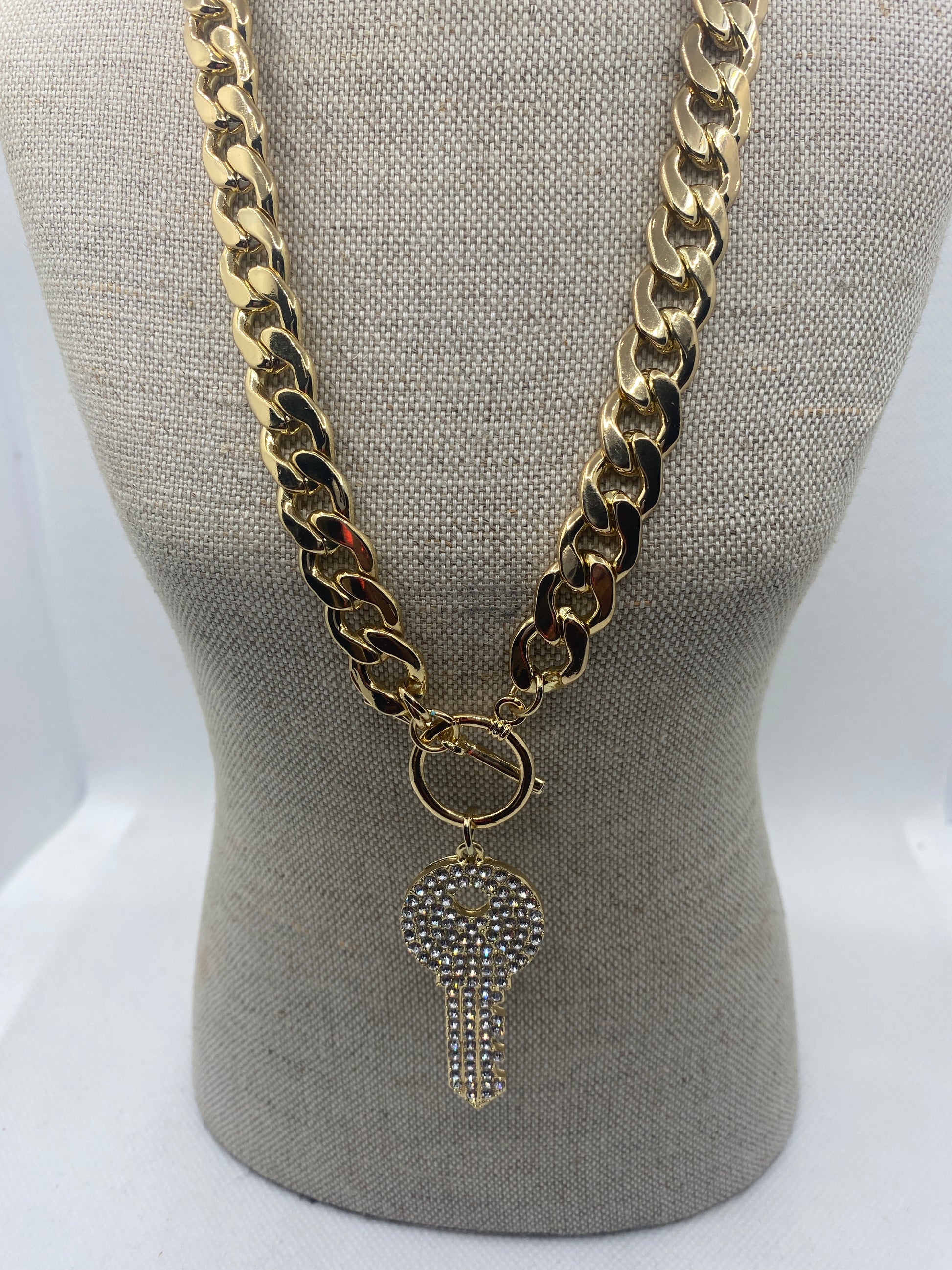Blinged out Key with chain link necklace. With stud earrings