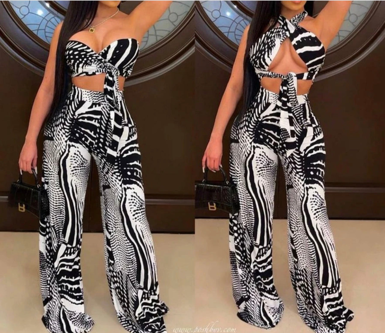 Print Top and Wide Leg Pants