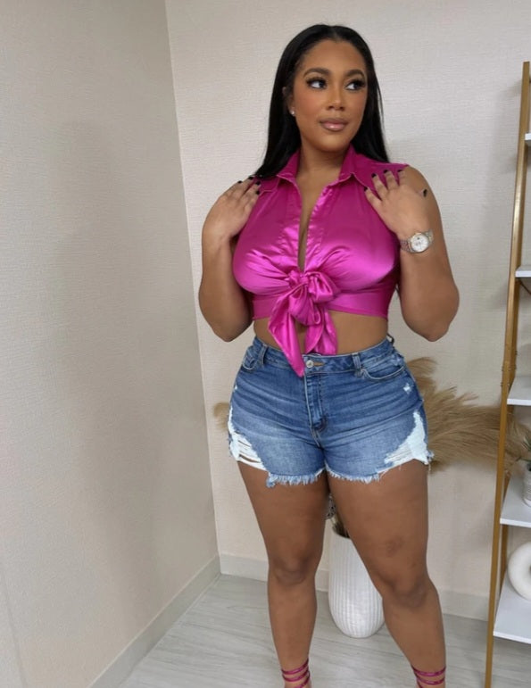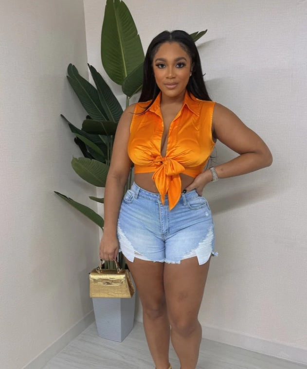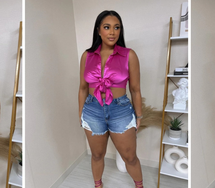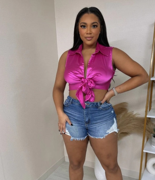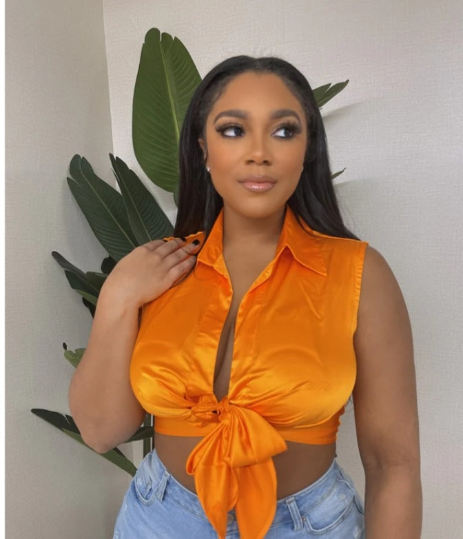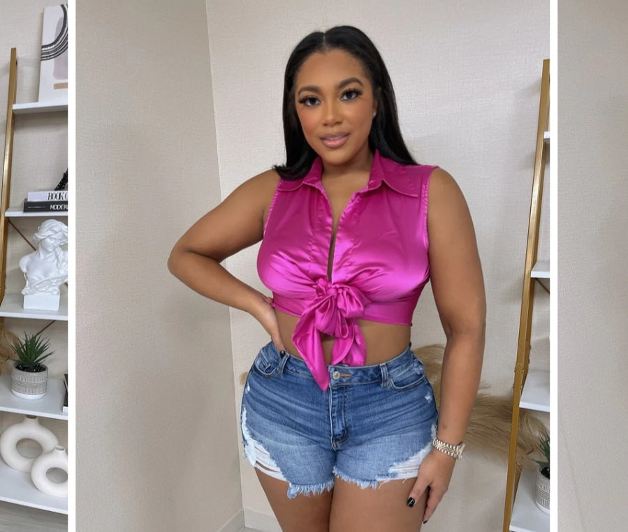 Satin Sleeveless Button Up Top