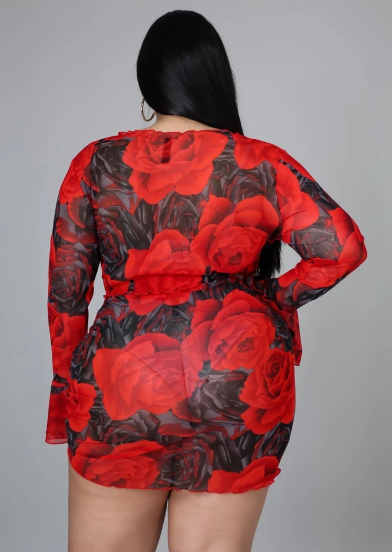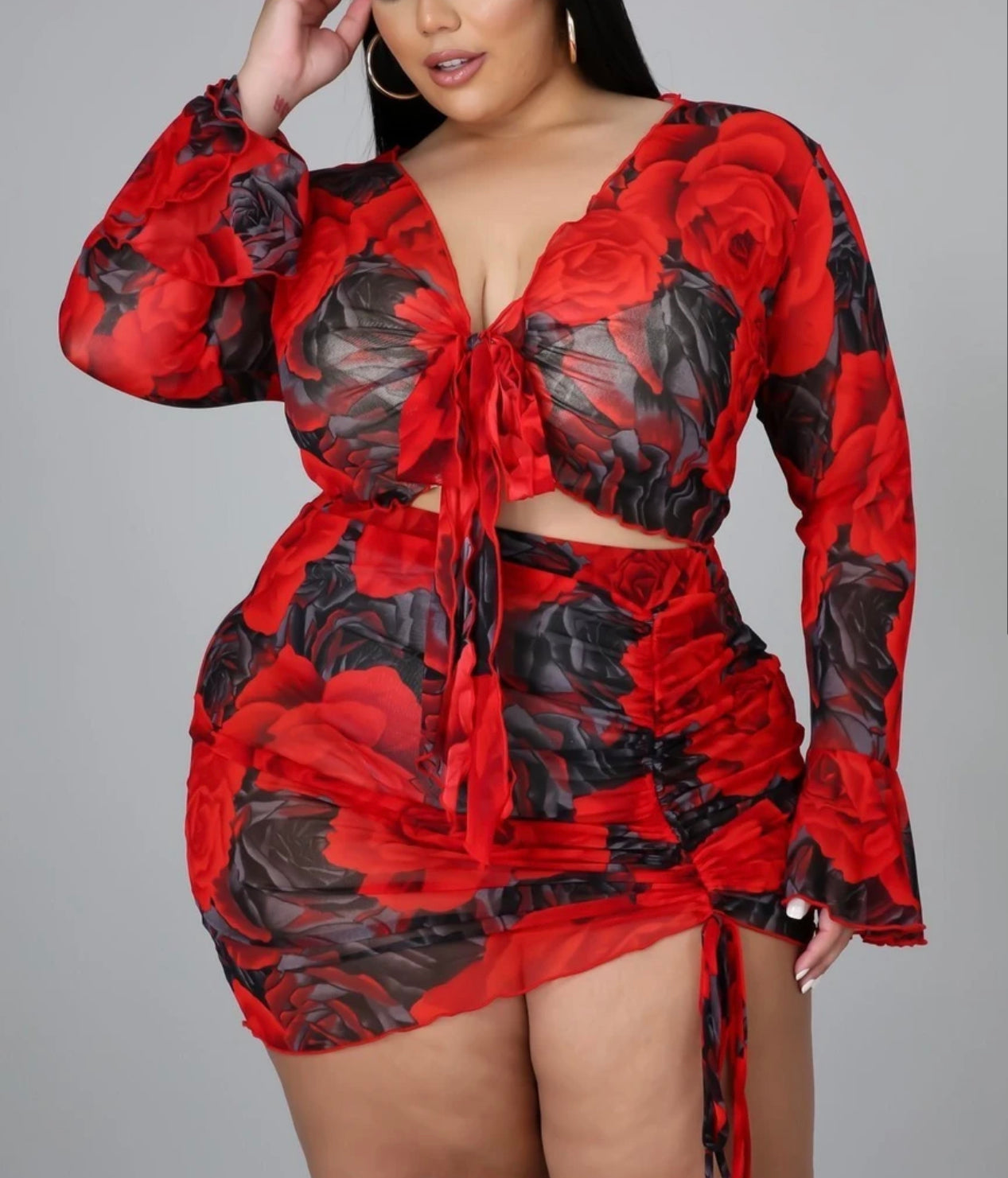 Mesh Rose Print Skirt and Top Set (Plus)
