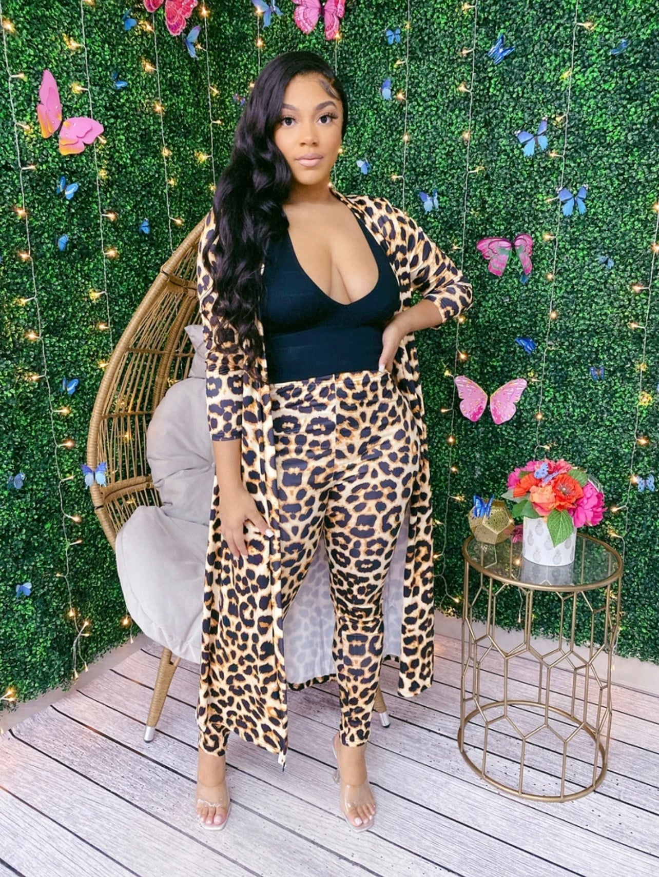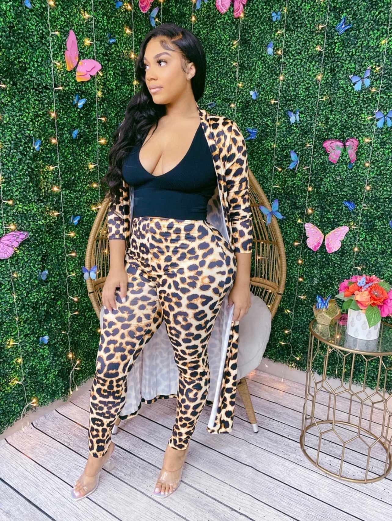 Print Cardigan and legging Set-Leopard