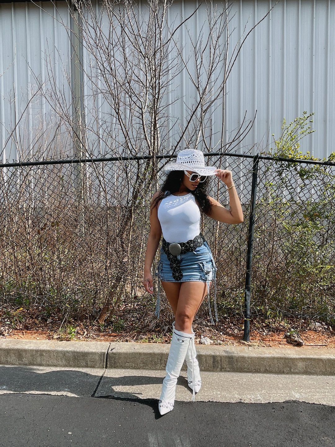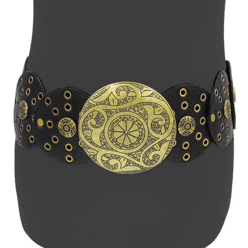 Turn heads and cinch your look with this Western-style cowgirl belt featuring intricate metal detailing and a statement buckle that channels pure rodeo glam. Designed to sit perfectly at the waist or hips, this belt blends rugged charm with modern cowgirl confidence. The antique-inspired metalwork and polished buckle add just the right amount of shine, making it the ultimate accessory for denim, dresses, or full-on fringe fits.