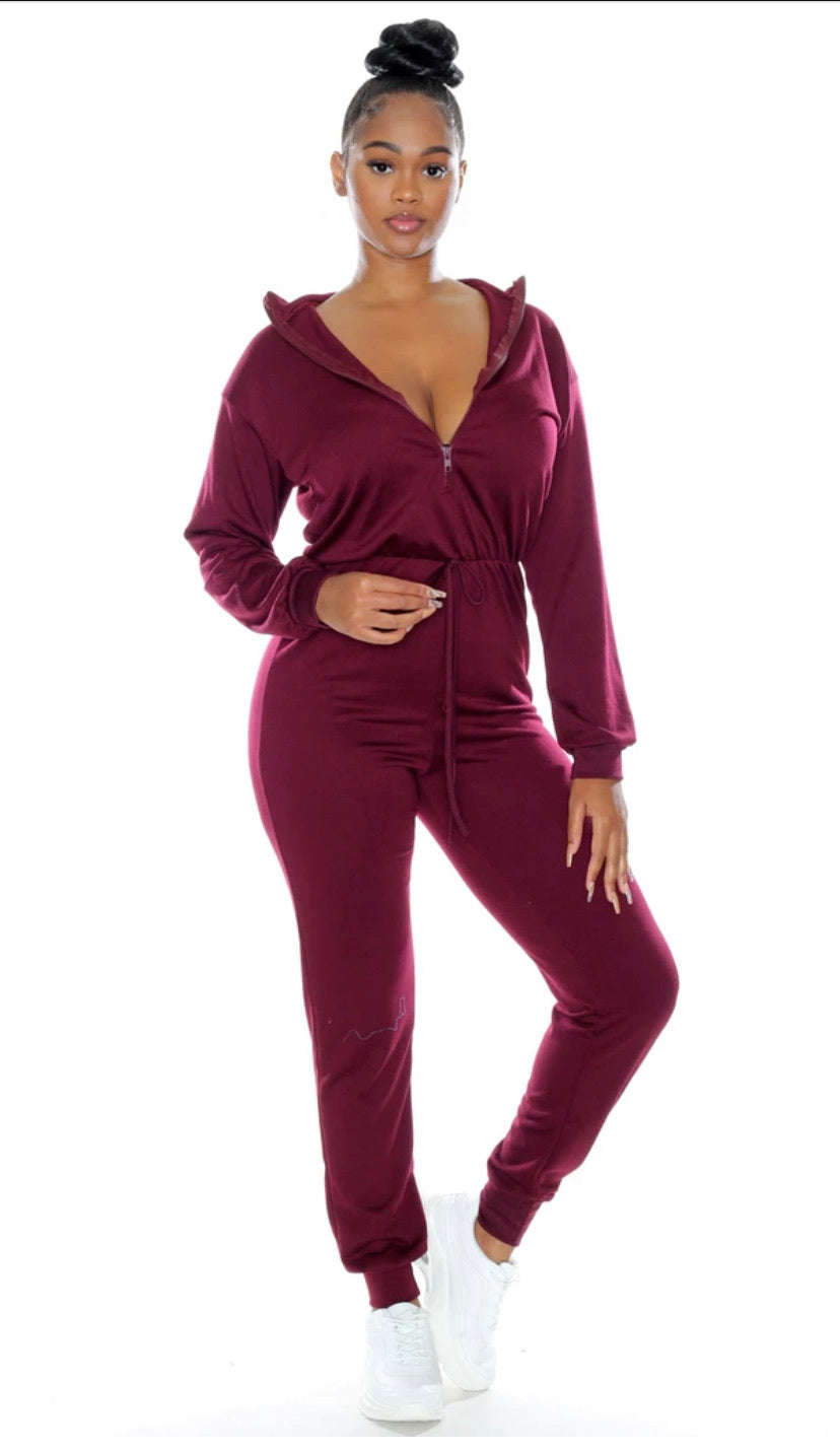 Solid color zip up jumpsuit