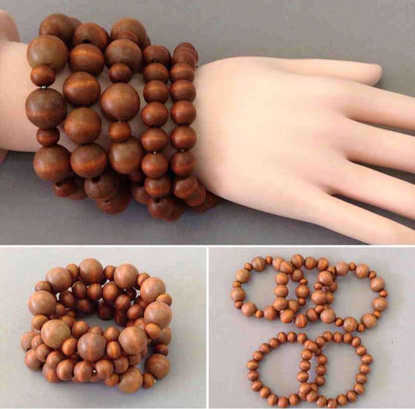 5 wooden strtch bead ball bracelets